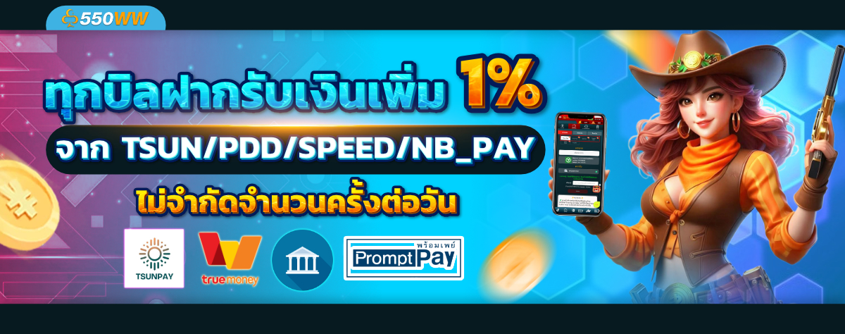 🧧เพียงลูกค้าฝากเงินผ่านระบบ TSUN_PAY/PDD_PAY/SPEED_PAY/NB_PAY จะได้รับเงินเพิ่ม 1% ของยอดฝาก